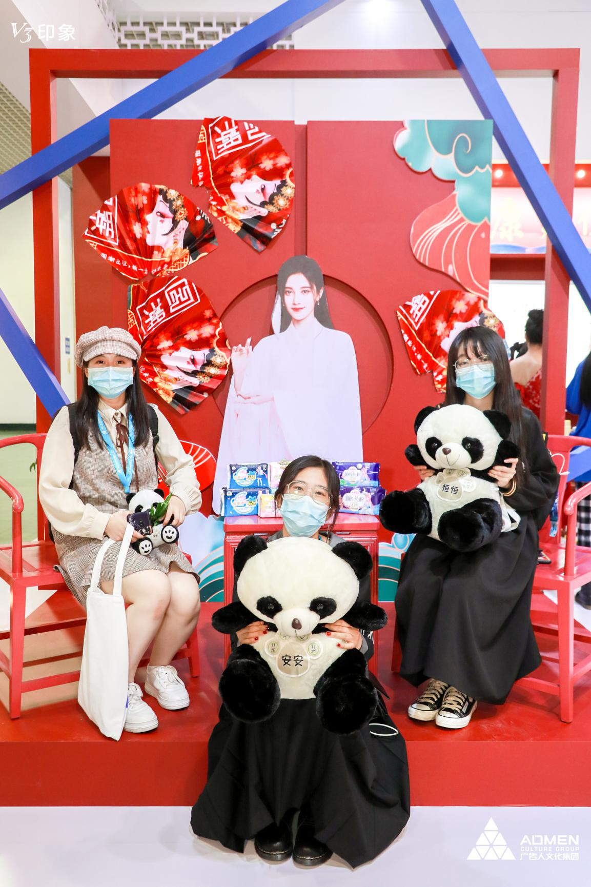 918搏天堂集团展位的正红布景极具特色,吸引了众多国风爱好者前来打卡,不少汉服小仙女都被熊猫玩偶萌翻了,纷纷合影留念。