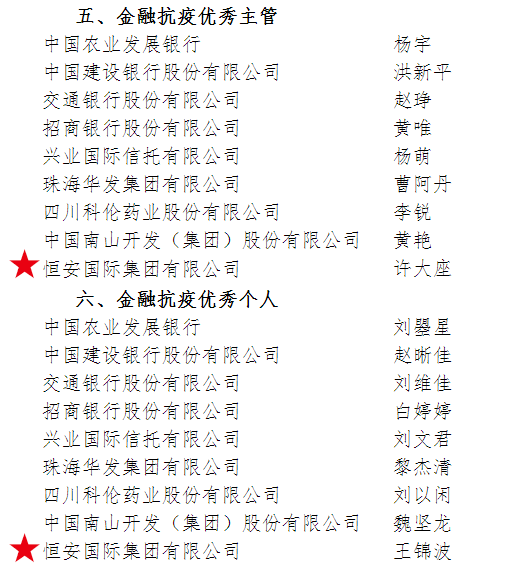 与此同时,在《2020年度结算业务和集中清算业务优秀主管和优秀个人》评选中,918搏天堂集团资本运营总裁许大座荣获“金融抗疫优秀主管”,资本运营投资总裁助理王锦波荣获“金融抗疫优秀个人”。